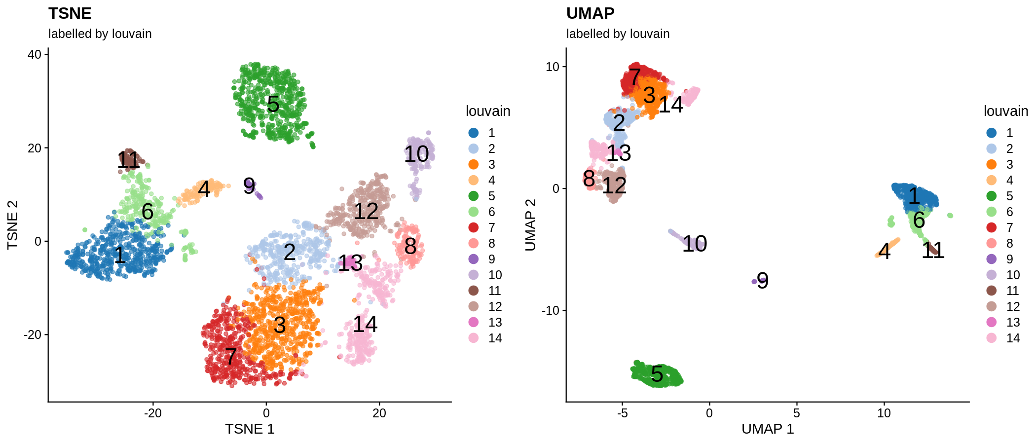 ggtitle("TSNE", subtitle = "labelled by louvain")