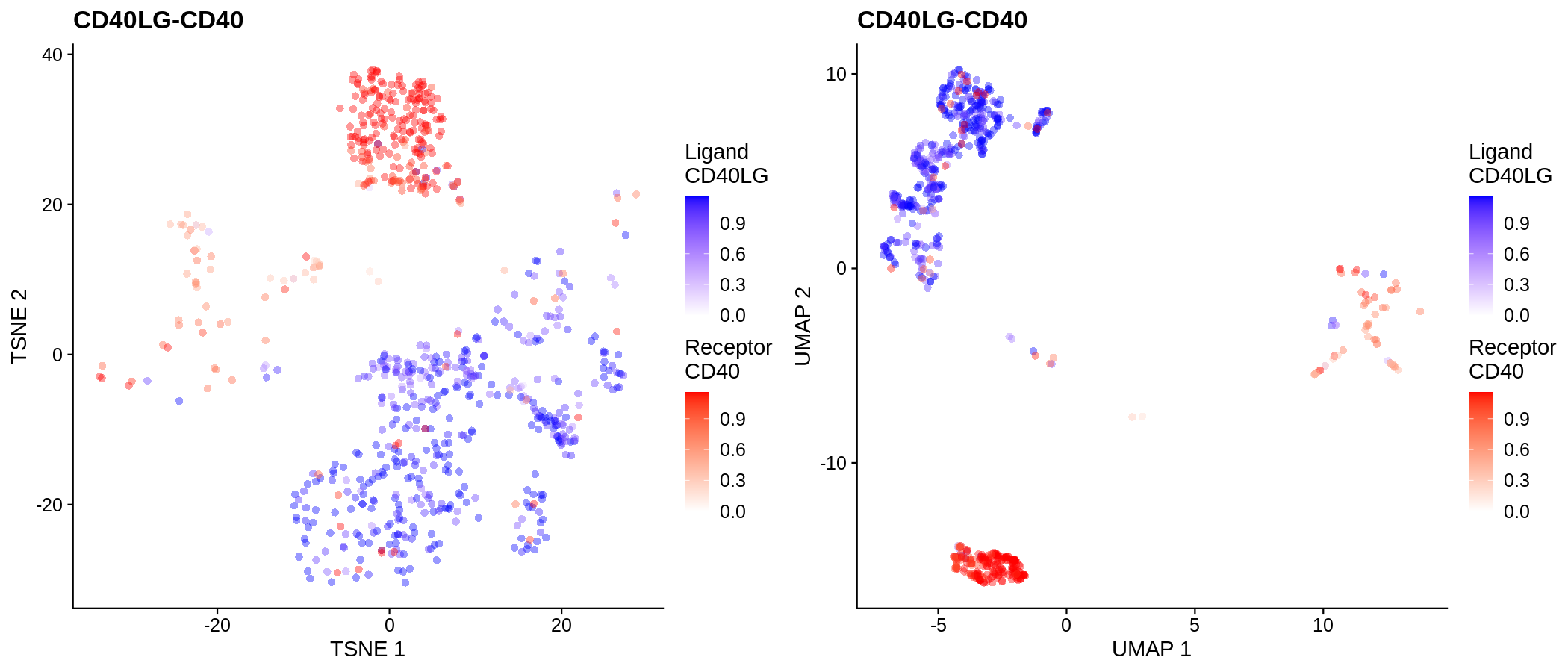 Plot ligand-receptor expression on UMAP and t-SNE projection