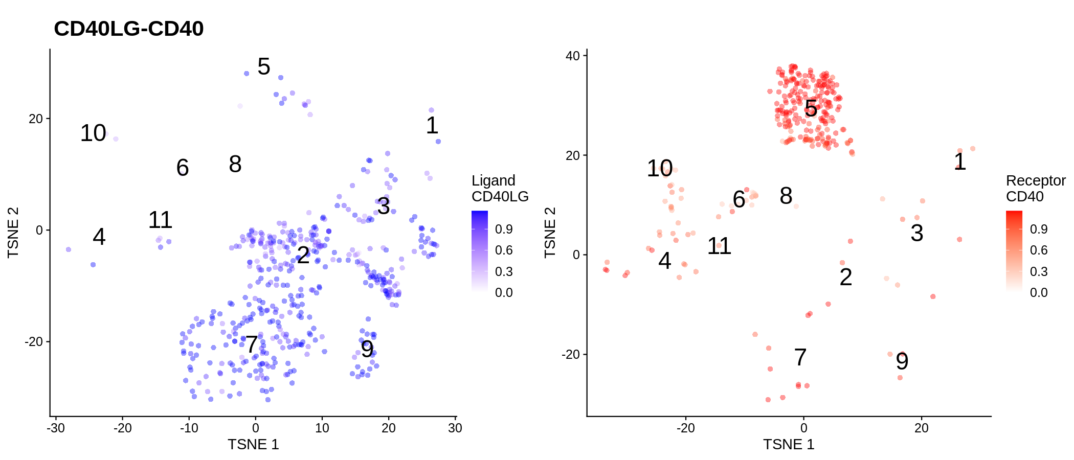 reducedDims(object)to plot. - A character vector of length 2 containing the ligand and receptor gene symbol.